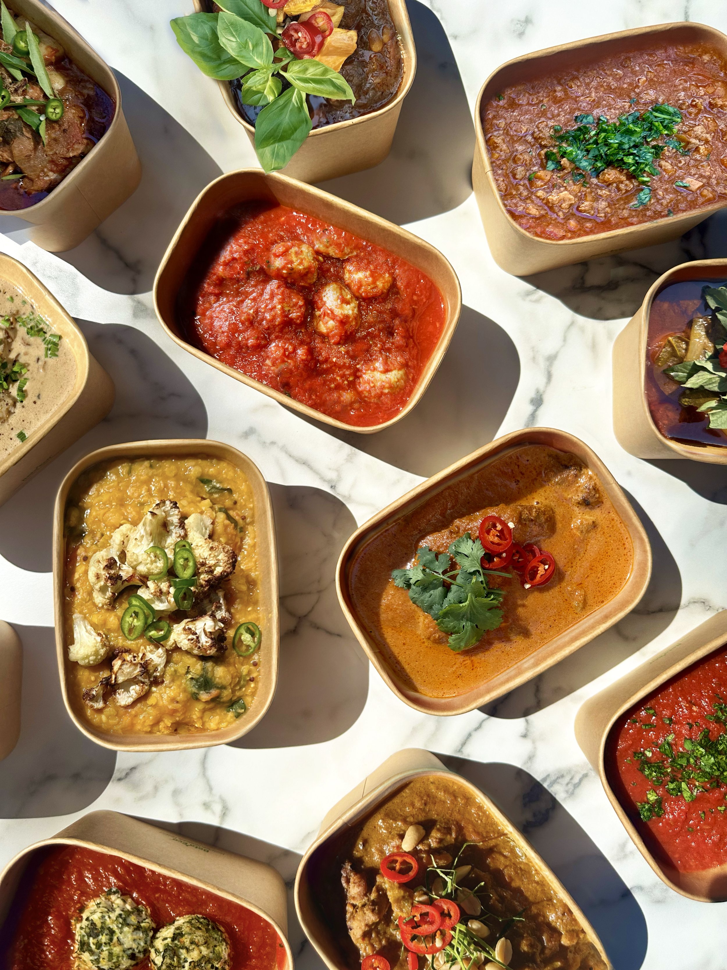 We deliver your meals in environmentally friendly containers and recycled paper boxes and insulated liners. This is the most sustainable and has the least impact on the environment, and is safest for delivering your food at the optimum temperature to avoid spoiling.
